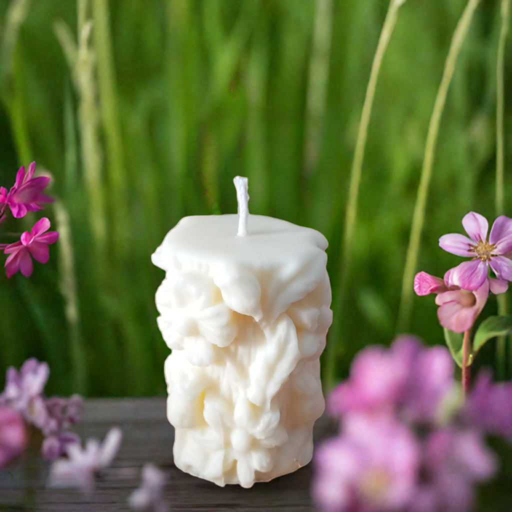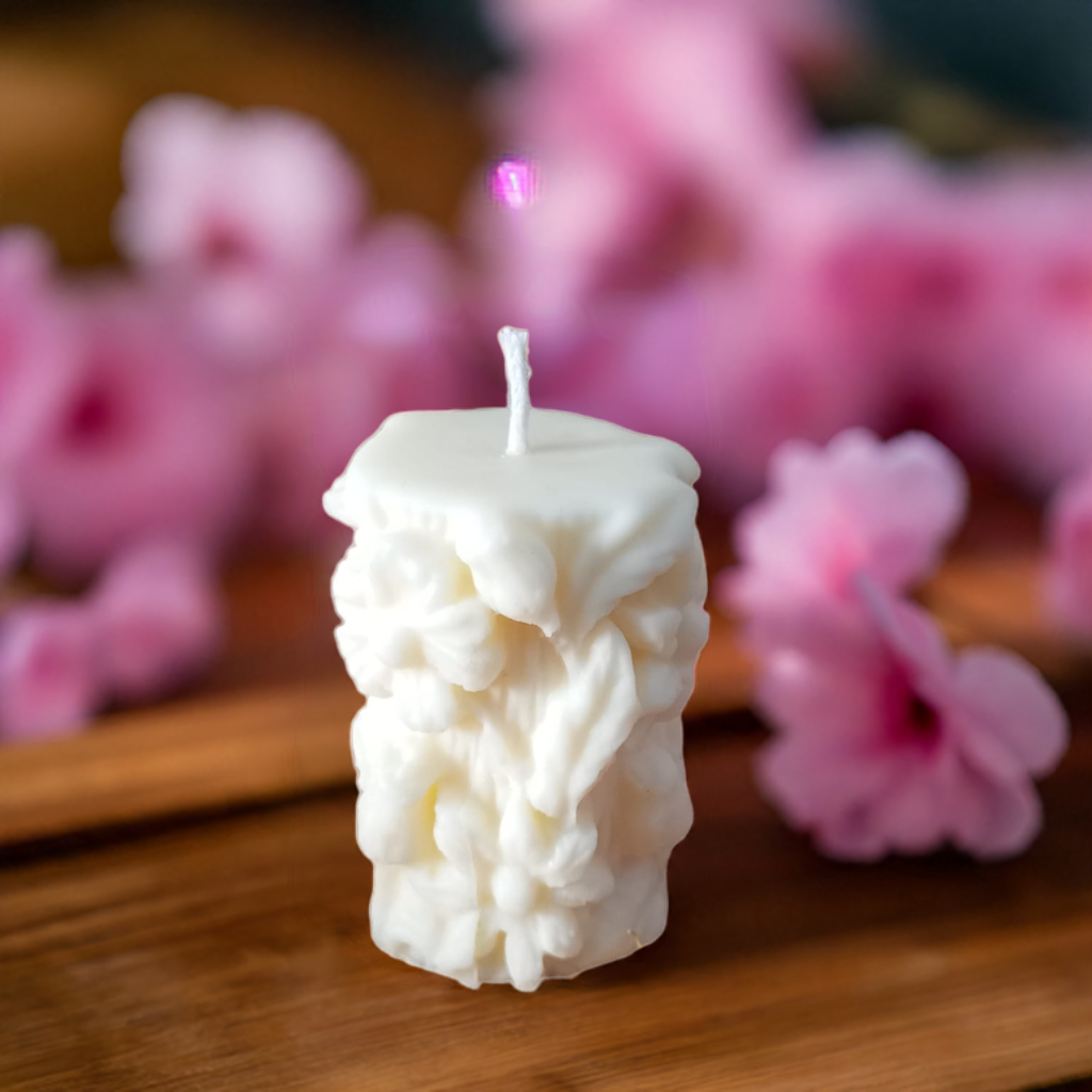 La cera de soja ofrece un acabado mate y suave, resaltando el diseño en relieve con un toque minimalista y elegante.