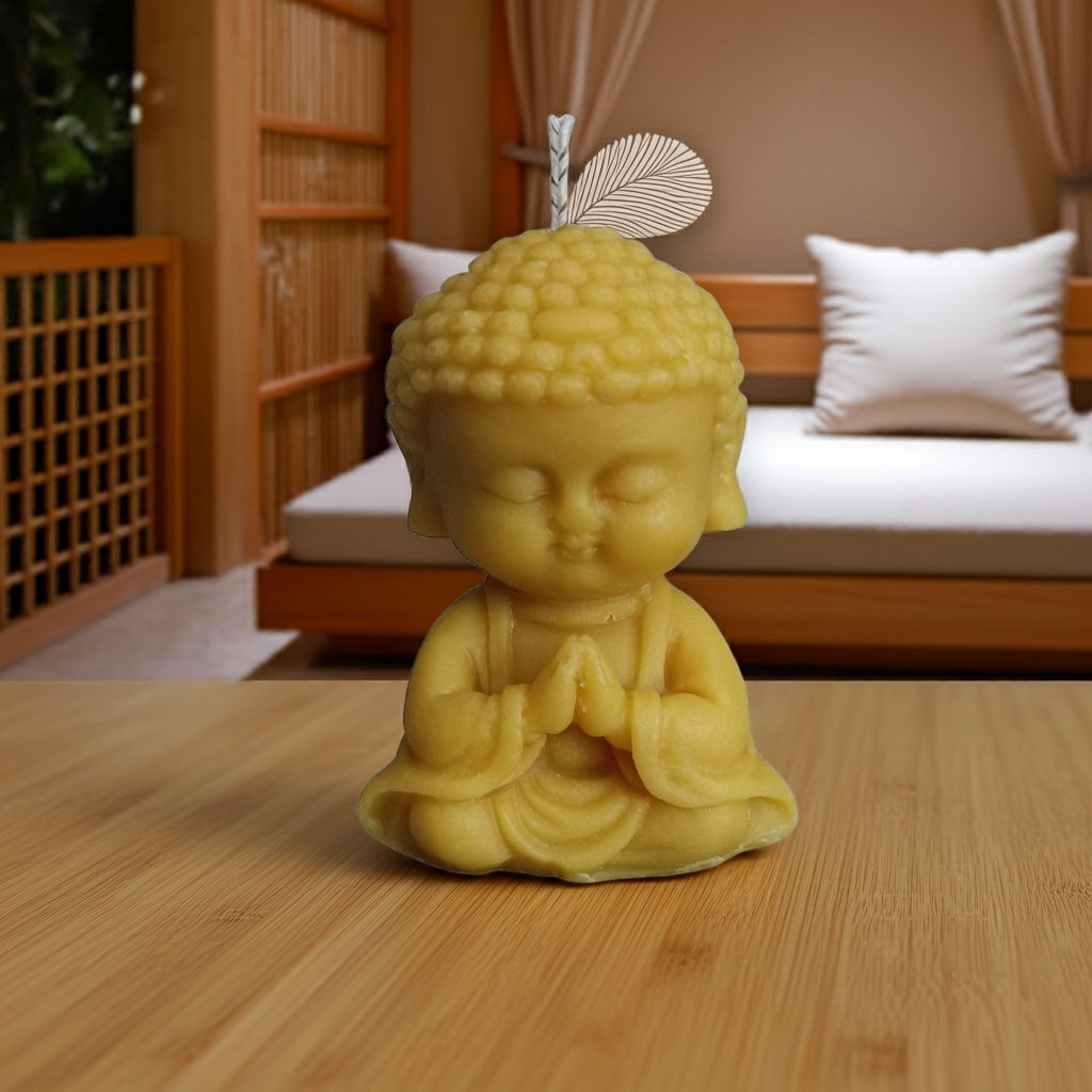 Con su semblante sereno y elaboración artesanal, este Buda de cera de abeja irradia bienestar y buena fortuna. Es una presencia que llena tu hogar de paz y energía positiva.