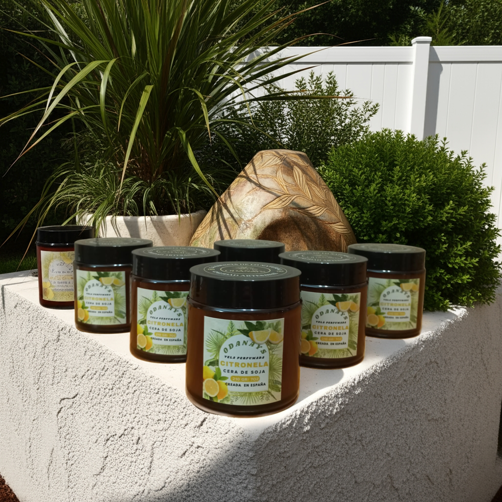 ✔ Una vela de soja que ofrece protección natural frente a los mosquitos.