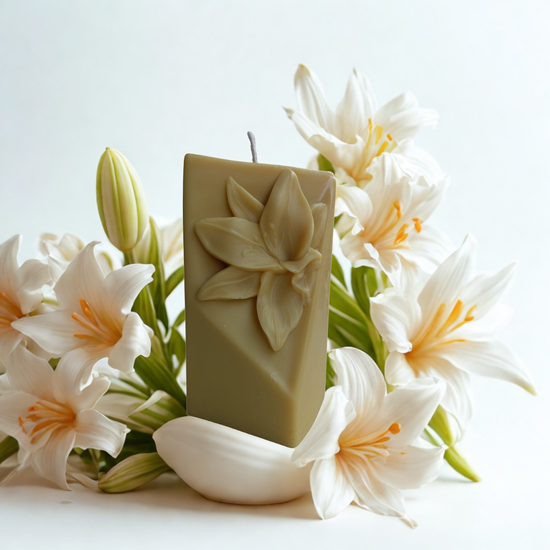 La Vela Lirio refleja la delicadeza de la flor del lirio en cada detalle de su forma artesanal. Su presencia aporta energía de renovación, armonía y serenidad, inspirada en la simbología del lirio y el feng shui, donde estas flores representan pureza, dedicación y equilibrio.