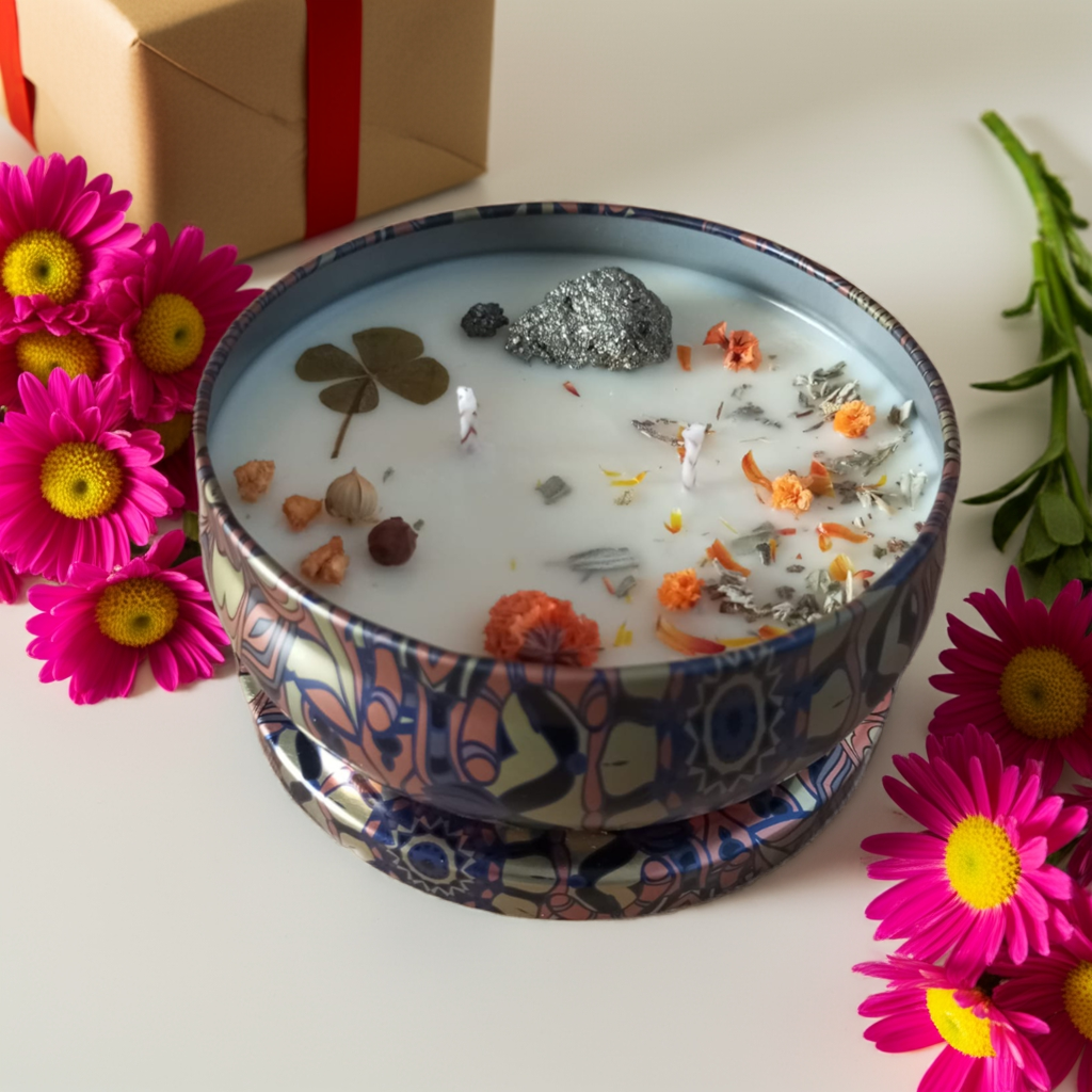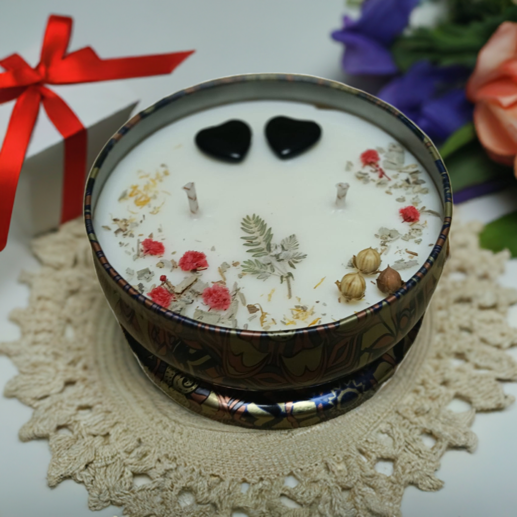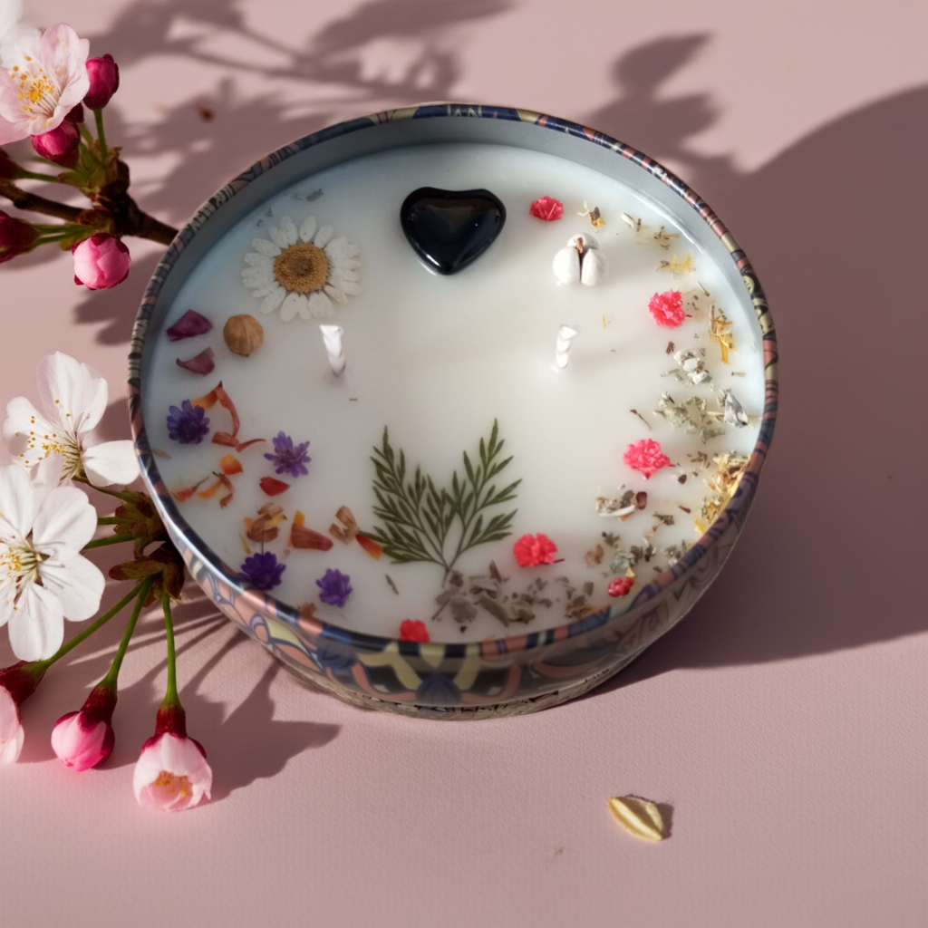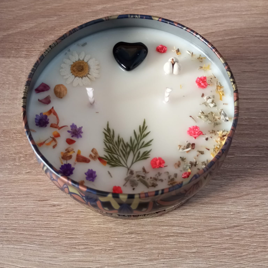 Cada una está hecha a mano con cera de soja 100 % natural, decorada con flores secas y pequeños minerales que añaden un toque único y elegante a tu espacio. Al ser de origen vegetal, la cera de soja quema de manera más lenta y limpia, convirtiéndose en una elección perfecta para quienes buscan productos respetuosos con el medio ambiente y sostenibles.