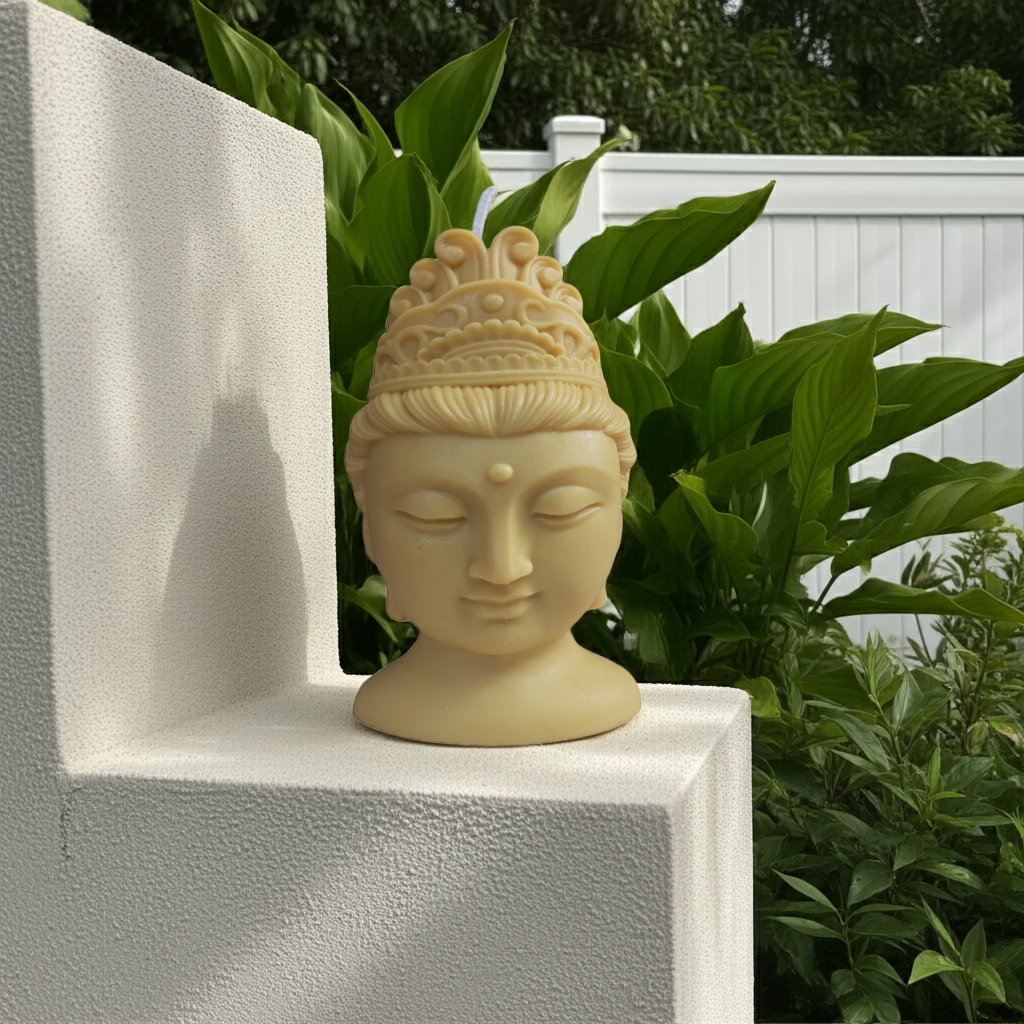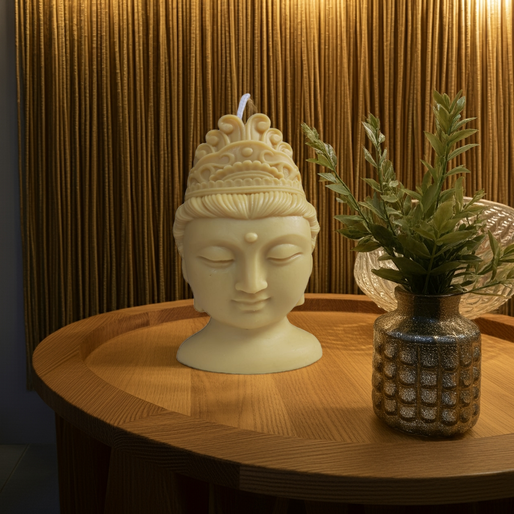 Esta vela escultural en forma de busto de Buda, con su sonrisa serena, transmite paz y equilibrio. Su presencia invita a la contemplación y a crear un rincón donde la luz y la calma fluyan naturalmente.